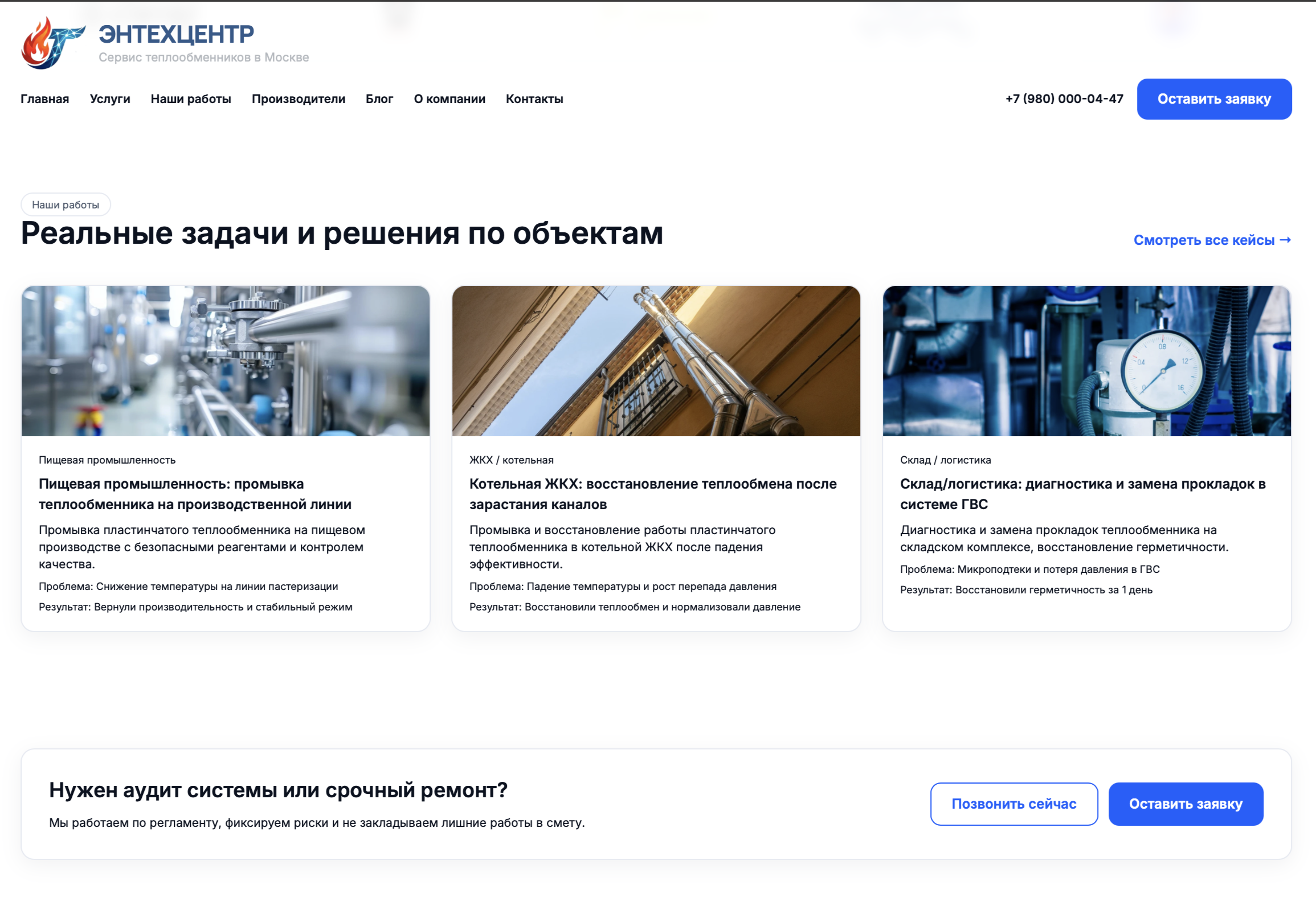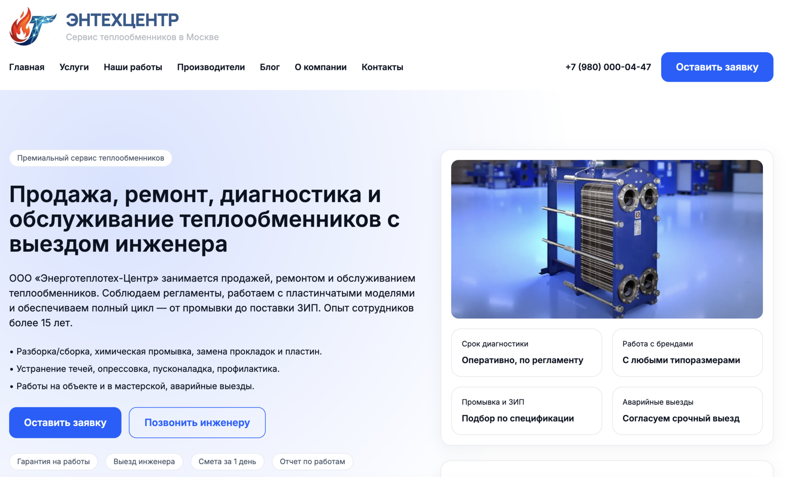Кейс: сайт ООО «ЭнергоТеплоТех‑Центр» на чистом коде | Hated.ru