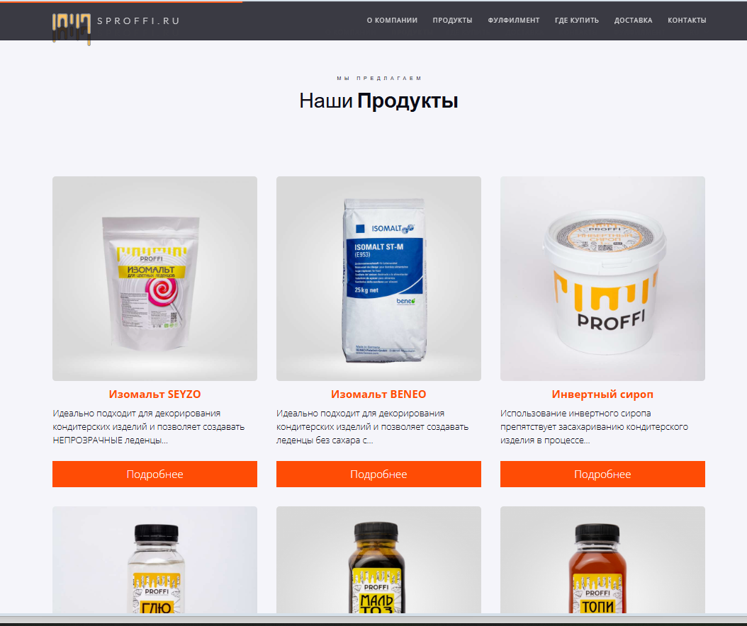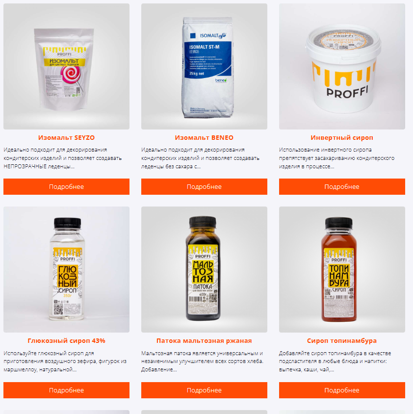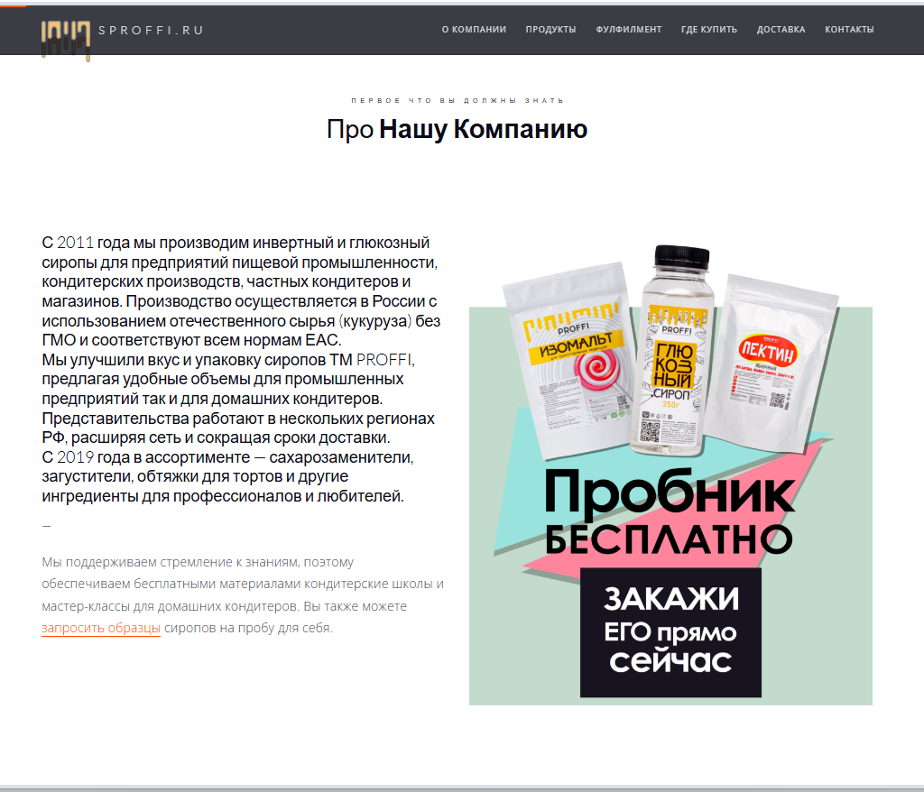 SPROFFI.ru — это специализированный ресурс, посвященный производству и продаже высококачественных сиропов для кондитерской индустрии. Сайт ориентирован на профессиональных кондитеров, предприятия пищевой промышленности и частных мастеров, обеспечивая доступ к широкому ассортименту продукции, включая инвертные и глюкозные сиропы, сахарозаменители, загустители и другие необходимые ингредиенты.