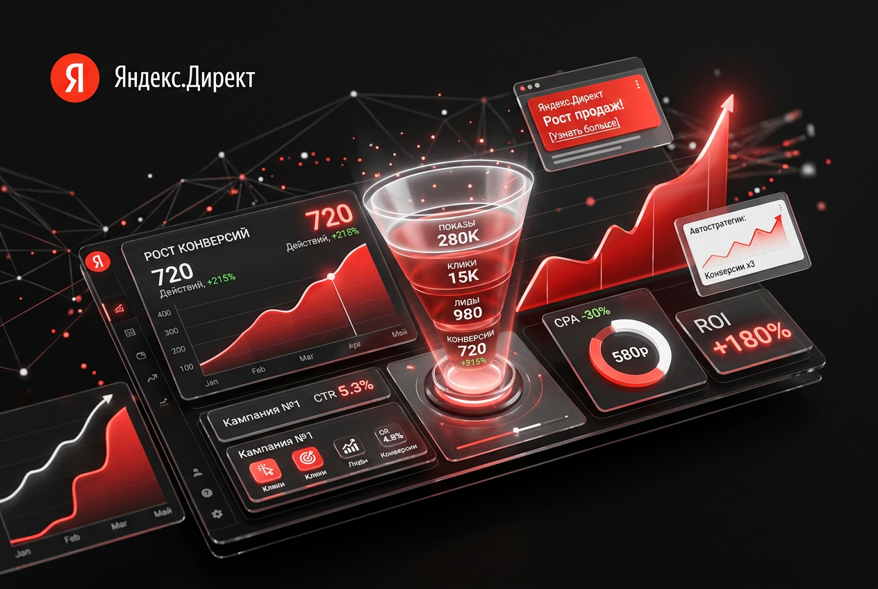 Мы гарантируем профессиональную настройку рекламной кампании согласно лучшим практикам Яндекс.Директ, запуск в согласованные сроки и получение целевого трафика на ваш сайт. Конкретные показатели конверсии (количество заявок, звонков, продаж) зависят от многих факторов: качества вашего сайта, конкурентоспособности оффера, ценообразования и специфики ниши, поэтому обсуждаются индивидуально после аудита проекта.